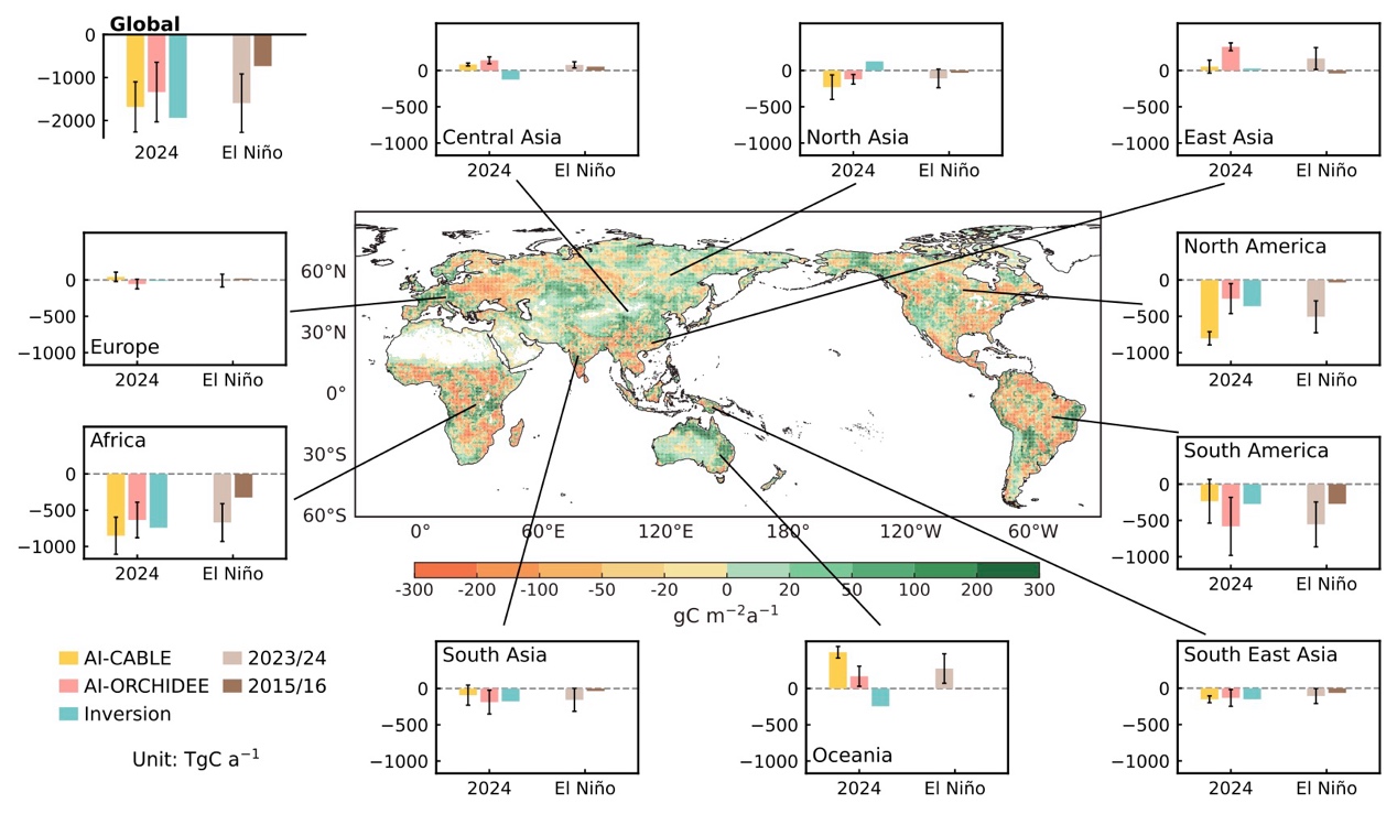 最新发表 | 人工智能揭示2024年全球陆地生态系统碳汇减半