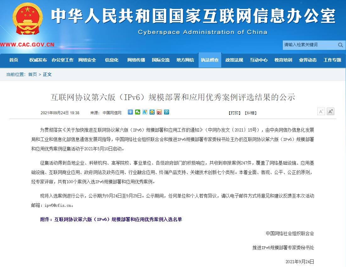 捷报再来!CARSI入选IPv6规模部署和应用优秀案例