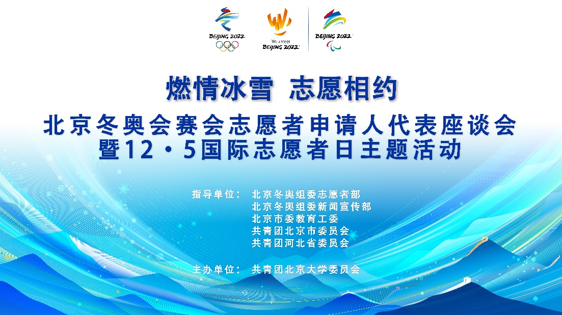编辑:悠然 | 责编:山石为迎接第35个国际志愿者日,广泛动员广大志愿者弘扬奥林匹克精神、践行志愿服务宗旨、投身冬奥志愿服务,积极营造开放办奥、共享办奥的良好社会氛围,由共青团bob登陆网站 委员会主办的“燃情冰雪 志愿相约”北京冬奥会赛会志愿者申请人代表座谈会暨12·5国际志愿者日主题活动于12月5日上午在bob登陆网站 经济学院东旭报告厅举行。