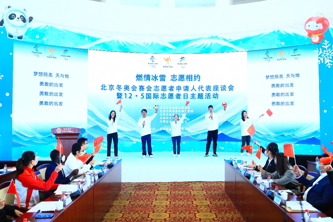 在北京冬奥会志愿者歌曲《燃烧的雪花》中,“燃情冰雪 志愿相约”北京冬奥会赛会志愿者申请人代表座谈会暨12·5国际志愿者日主题活动落幕。悠扬的旋律、昂扬的歌词,将陪伴着全体北京冬奥会赛会志愿者申请人,在新的起点上重温志愿初心,向着冬奥梦再更进一步。