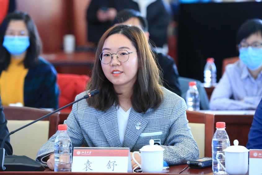 清华大学人文学院外文系2016级本科生袁舒是第一位成功报名北京冬奥会赛会志愿者的大学生申请人,也是清华大学“深耕计划”学员。她结合过往的志愿服务经历,向与会嘉宾分享了自己在参与志愿服务过程中的收获和思考,表达了对奥运精神的理解、对冬奥志愿工作的热情,展现了新一代青年人的责任与担当。