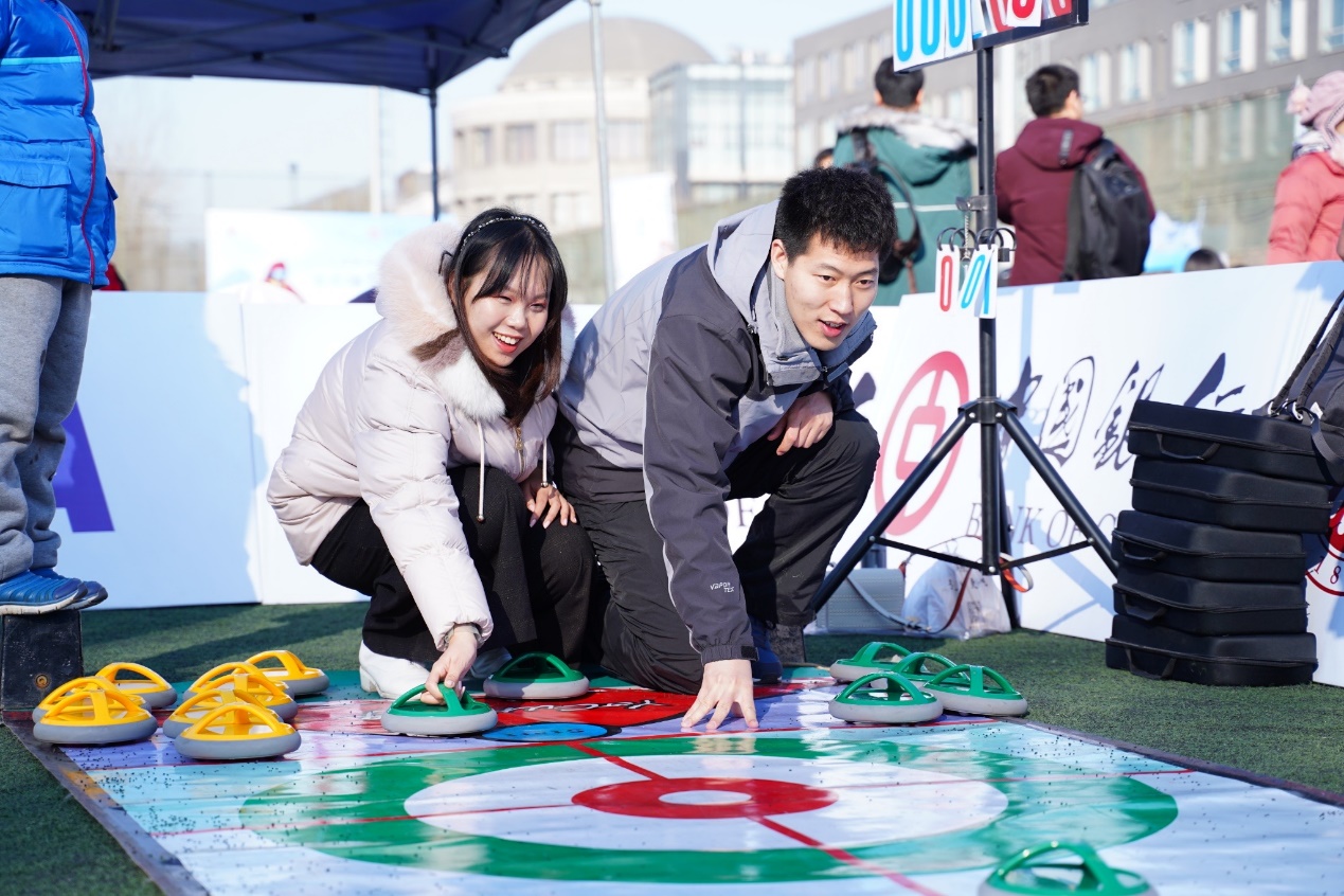 北大学生在冰雪课堂上体验冰壶的乐趣