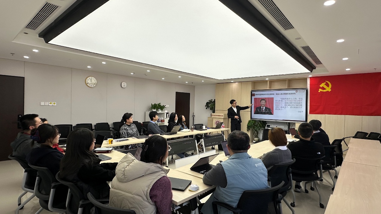 编辑:晏如 | 责编:燕元为学习贯彻党的二十届四中全会精神,11月4日,学科建设办公室党支部在燕园大厦1113会议室举办主题党日暨“求真务实”系列学习活动第八讲,邀请习近平新时代中国特色社会主义思想研究院陈绍辉研究员作题为“学习践行党的二十届四中全会精神,以学科高质量发展服务国家战略需求”的主题报告。学科建设办公室主任肖云峰,学科建设办公室副主任黄俊平、田晖、董礼,学科建设办公室党支部全体党员、入党积极分子参加活动。活动由学科建设办公室副主任、党支部书记何洁主持。