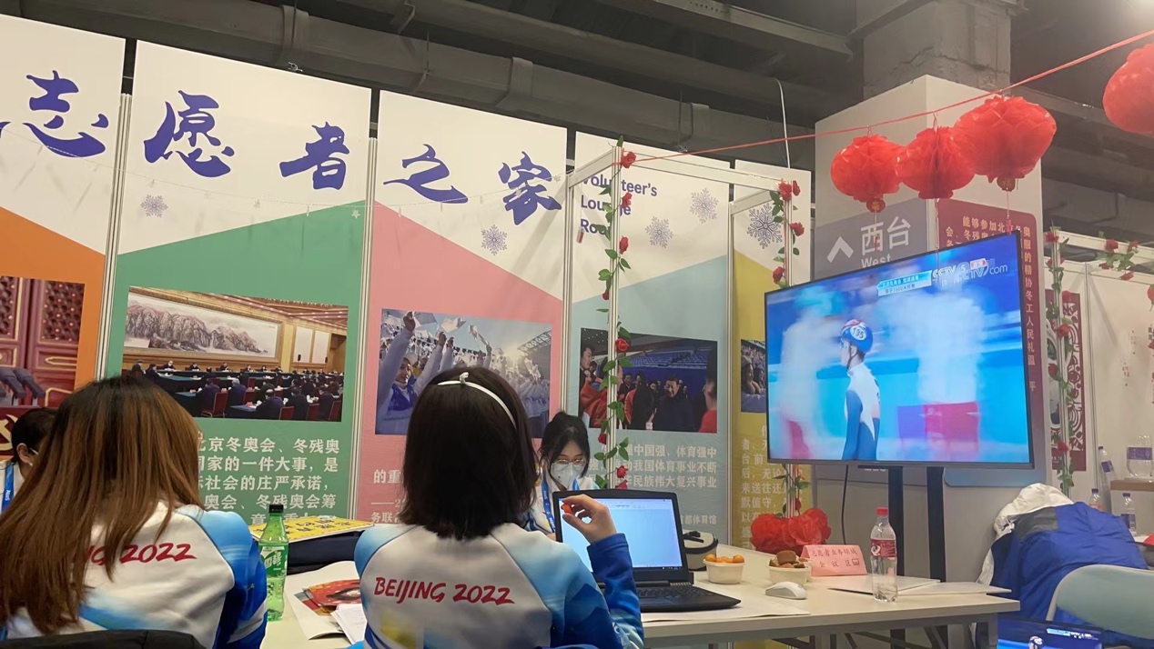 有时,回程却不那么顺利。送走客户后,错过了末班车的辛婷毅在2月5日晚被独自一人困在了首都体育馆。经过老师的协调,她终于顺利回到了驻地。抵达时,时间已近12点,驻地老师就在一盏路灯下等着接她。“老师一上来就替我重新围好松开了的围巾,还叮嘱我早点回去睡觉。” 深夜的北京,温度已降至零下,这份温暖将她包裹,使她不惧寒风。无数个细小的善意相连,“感动”便成了辛婷毅为自己的志愿者工作选择的最重要的关键词。