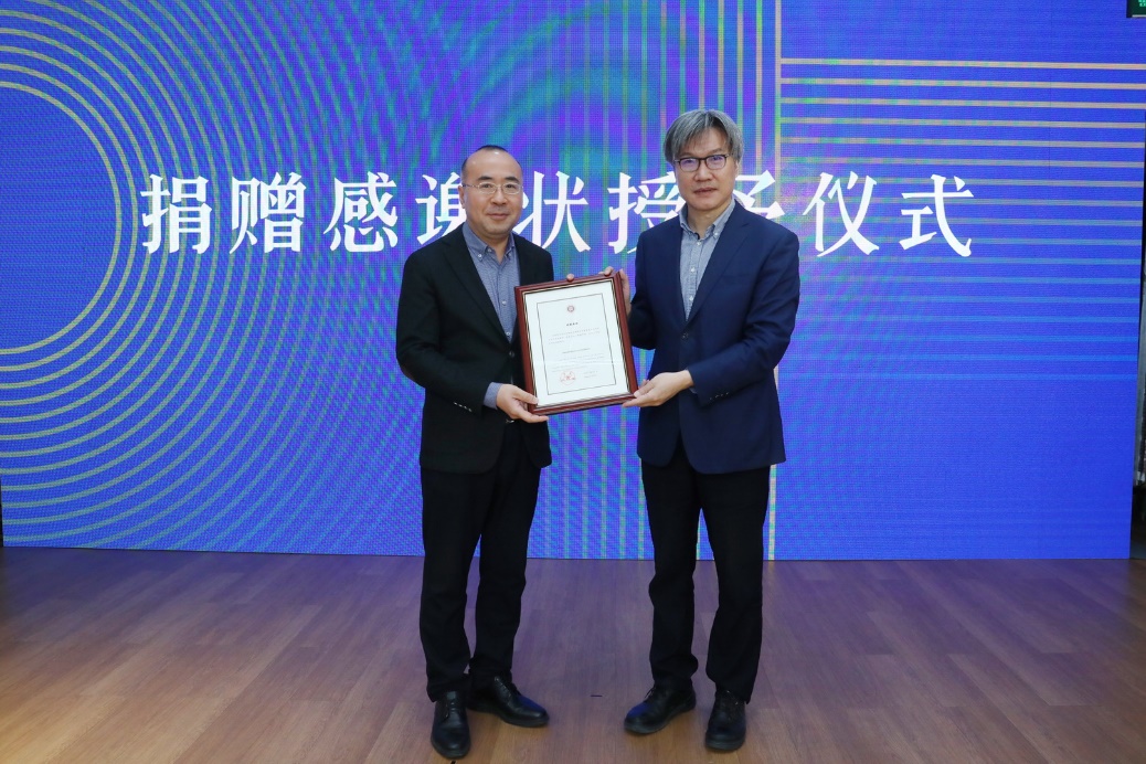 王博代表学校向李涛授予捐赠感谢状,感谢北京字节跳动对bob登陆网站 数字人文领域发展的支持。