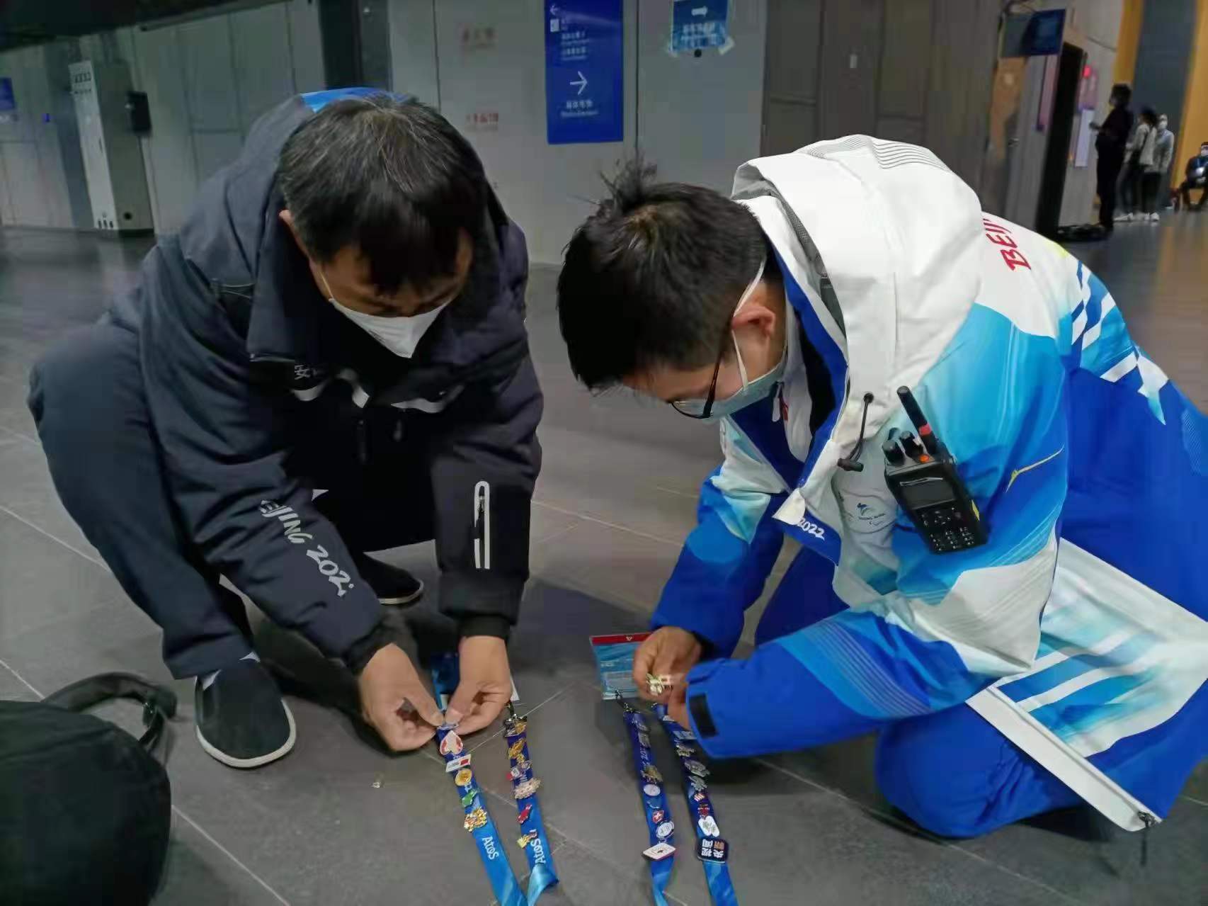 孙雨筠:对,而且这种展示是双向的。我们学习外语的同时外国友人也在靠近中国文化。我遇到过一个学中文的老爷爷。他是美国队的队内人员,他在看台看比赛时发现我戴着北大pin觉得特别熟悉,特意来问我是什么学校的。得知我是北大的学生后,他告诉我他的中文老师就来自北大!为了换北大的pin,他直接把一整套4个美国队的pin都给了我,还问了我很多关于中文的问题。(pin是各个国家奥委会发放给国家代表队、参会媒体、技术服务商和国际运动协会的徽章。参加奥运会的人和组织基本上都会有自己的徽章,上面会有不同国家的标识图案。志愿者会有志愿者独属的pin,大学生志愿者可能还会有自己学校的pin。互换pin是奥运场上一项重要的活动。)