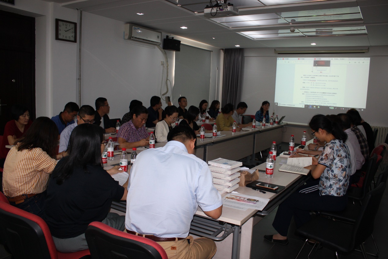9月17日,机关党委召开理论中心组学习会,组织党委委员认真学习了《习近平关于“不忘初心、牢记使命”重要论述选编》中“加强党的政治建设”“中国梦、复兴路”等内容,并进行认真讨论。