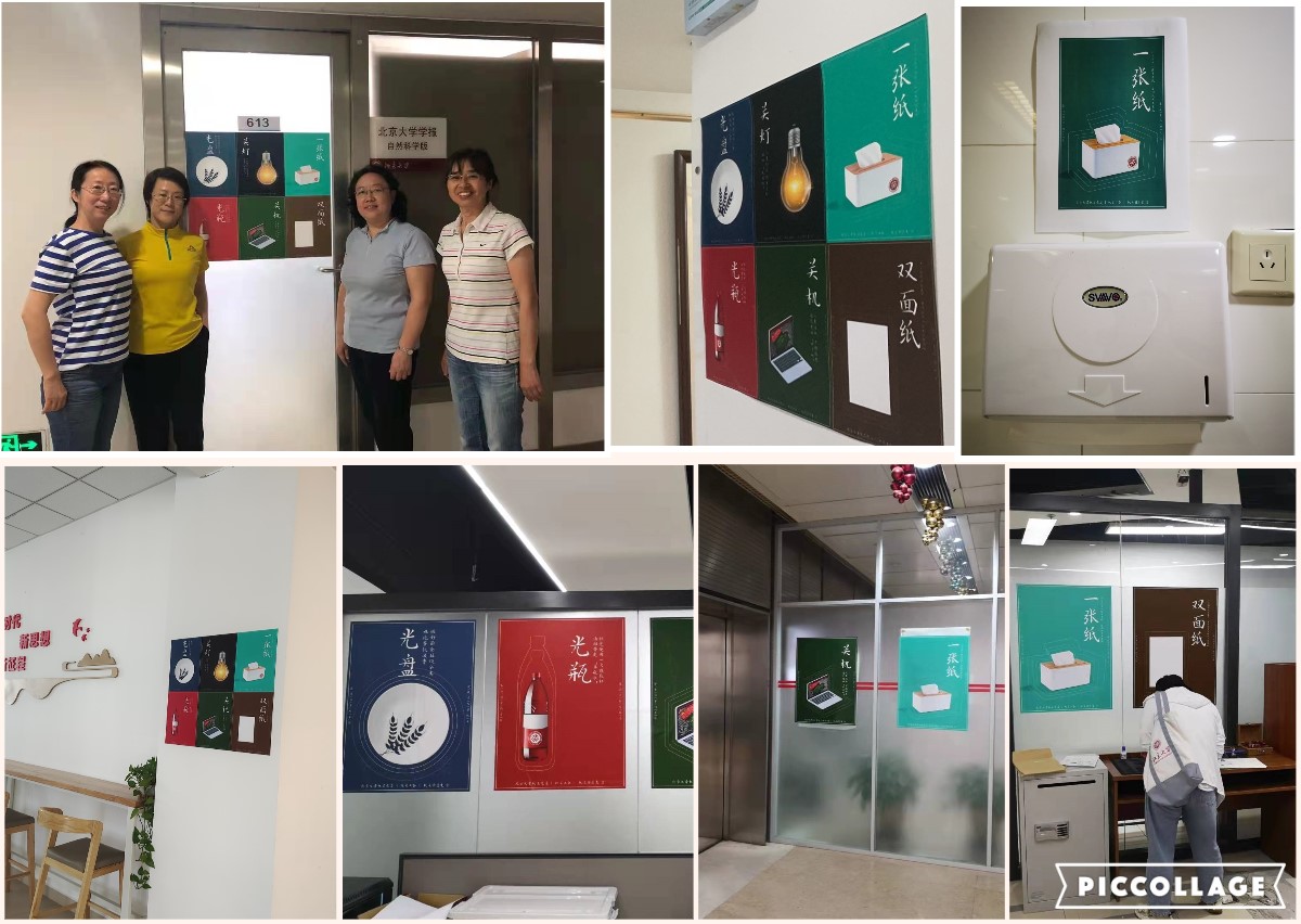 近日,在燕园大厦、勺园办公区、新太阳学生中心等各公共楼宇公共空间、会议场所等,写着“光盘”“光瓶”“关灯”“关机”“一...
