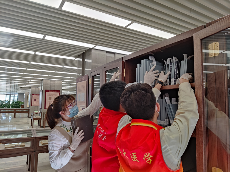 图书馆大钊阅览室党员带领志愿者整理革命文献